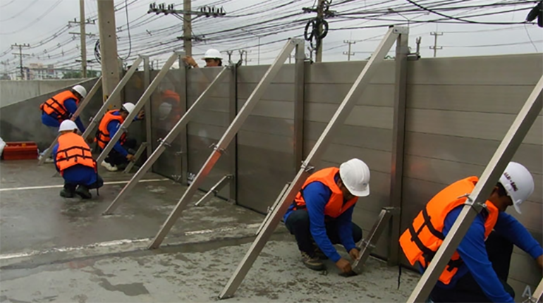 ติดตั้งผนังป้องกันน้ำ STOP LOG ความสูงในการป้องกันน้ำ คือ 1020 mm. = 6 PANELS