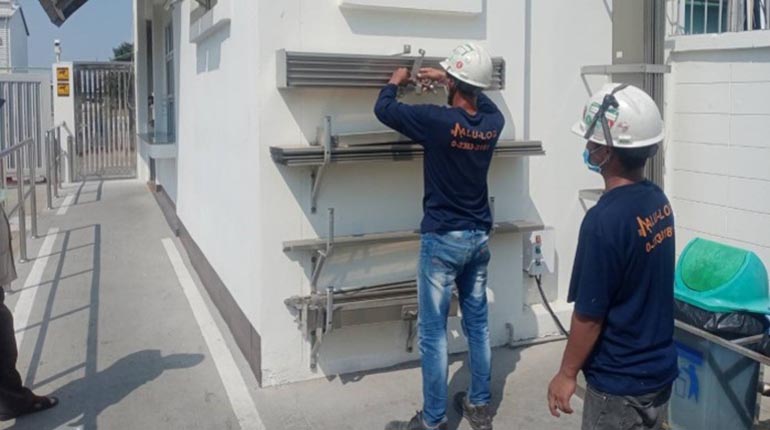 ติดตั้งผนังป้องกันน้ำ STOP LOG ความสูงในการป้องกันน้ำ คือ 855 mm. = PANELS