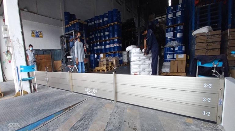 ติดตั้งผนังป้องกันน้ำ STOP LOG ความสูงในการป้องกันน้ำ คือ 1020 mm. = 6 PANELS