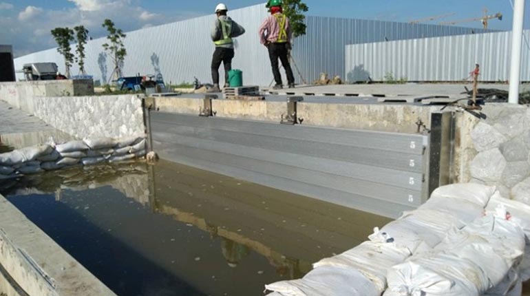 ติดตั้งผนังป้องกันน้ำ STOP LOG ความสูงในการป้องกันน้ำ คือ 530, 2320 mm. = 3, 14 PANELS